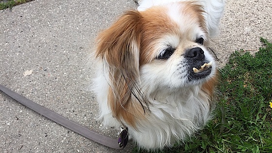 En dag, da min datter og jeg kom hjem, stod hunden på billedet udenfor havelågen.